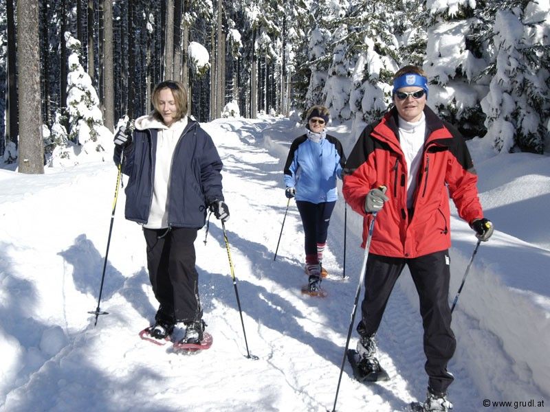 Nicht nur auf den Langlaufskiern kann man die tolle Landschaft erkunden sondern auch zu Fuß. Im Winter am Besten mit Schneeschuhen. Wir bieten für Sie geführte Schneeschuhwanderungen durch den verschneiten Weinsbergerwald an. Stapfen Sie mit Schneeschuhen auf nicht geräumten Wegen durch den Winterwald und hinterlassen Sie Ihre Spuren bei uns im Luftkurort Bärnkopf. Schneeschuhe können gegen eine Leihgebühr von € 5 beim Tourismusbüro Bärnkopf entliehen werden.